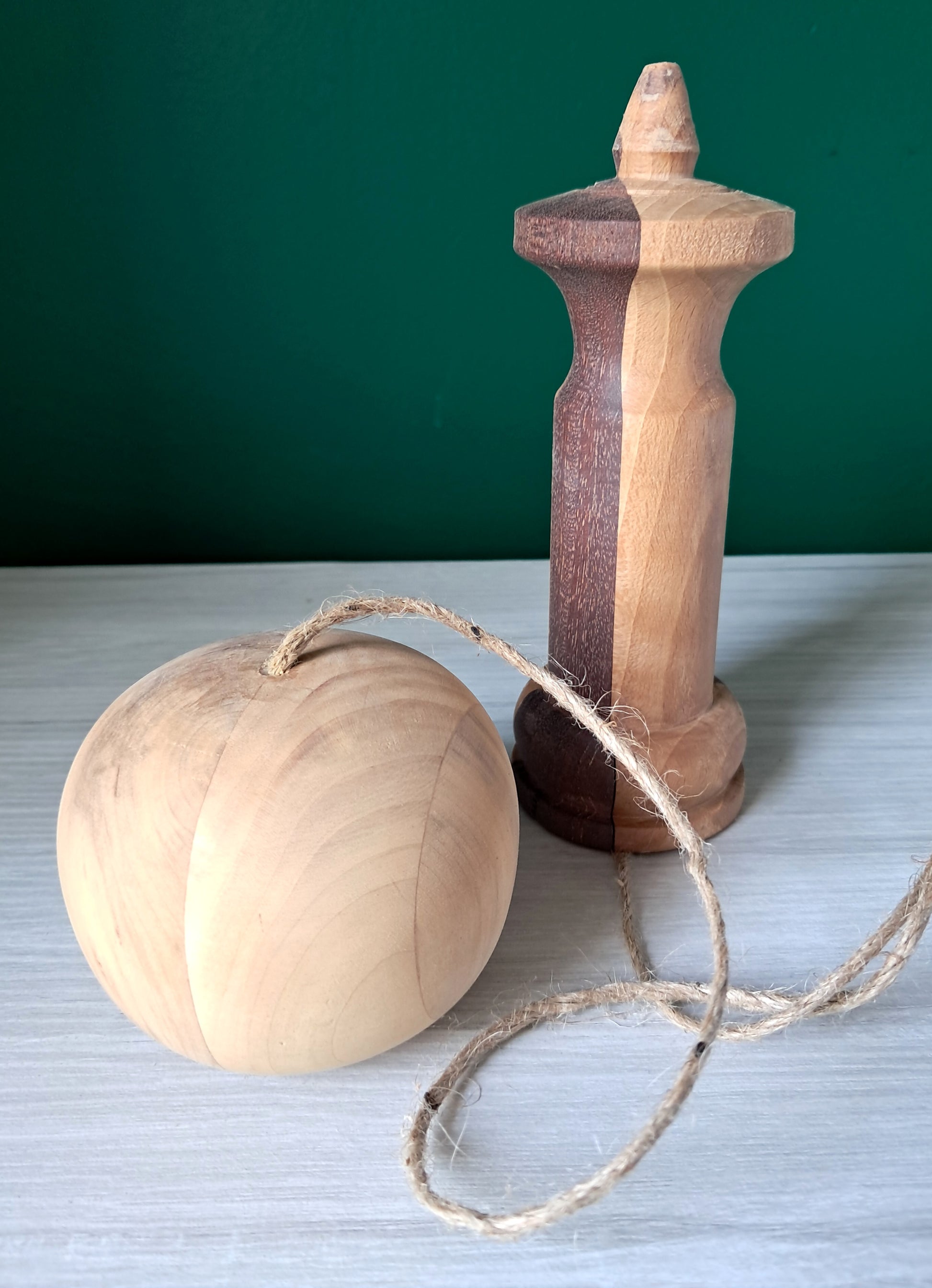 Ce bilboquet entièrement tourné à la main par l’artisan menuisier Thibault Florkin allie authenticité et nostalgie.