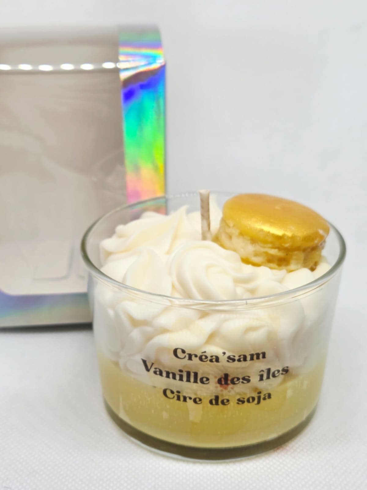 Cette bougie artisanale, coulée à la main avec de la cire de soja, diffuse un parfum enveloppant de vanille chaude et sucrée, rappelant les douceurs tropicales et les ambiances cocooning lointaines.